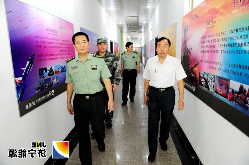 集团公司党委书记乔志猛陪同济宁军分区副政委王波及与会相关领导参观国防教育长廊